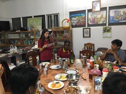 “When I first arrived in Cambodia I was absolutely terrified. So much so that I barely slept on the first night. I had just left college and quite frankly had never been away from my friends or family for more than two weeks. Therefore, once I landed in this weird and wonderful country I basically thought to myself ‘what the hell have I done?’. For the first month I looked at my phone calander everyday counting how down how long I had left until I could see my family again. What I had not realised yet was that this community would become my family. With Brother Roberto and Father Eugene almost always around, it has felt like I had two dads and the rest of the community have become like brothers and sisters to me. Everyday, you never fail to make me laugh and feel as though I am part of something greater. The only expectation that I came with is that I would be teaching English. (Long pause) That expectation quickly faded as I was introduced to the children Fund. It has been the most confusing and frustrating job but one that is unbelievably rewarding. So, I would like to personally thank Brother Roberto for trusting me to help carry out his mission of improving the lives of hundreds of children. I feel truly honoured. Father Eugene. You are hands down the funniest priest I have ever met. So thank you for laughing with me, always being light hearted and encouraging me, Paul and Maryam to carry out our stupid ideas like helping me to get Paul to eat a whole Chilli. Br Mony, all I can say is that you are a legend. You have made my life here easy breezy and your commitment to the students is endlessly inspiring. Br Martin, thank you so much for teasing Maryam it has been wonderfully entertaining and thank you for this top (point to top I am wearing). Vietnamese brothers, it has been short but sweet and I am very lucky to have met you all. And finally Paul and Maryam, (que embarrassing tearing up) and high pitched “what the hell I think I’m gonna cry”. Compose myself.) What can I say, I could not have done this without you both. You have become two of my most favourite people. Thank you for putting up with my criticism and my bad moods. You have made this adventure truly worthwhile and I love you.”